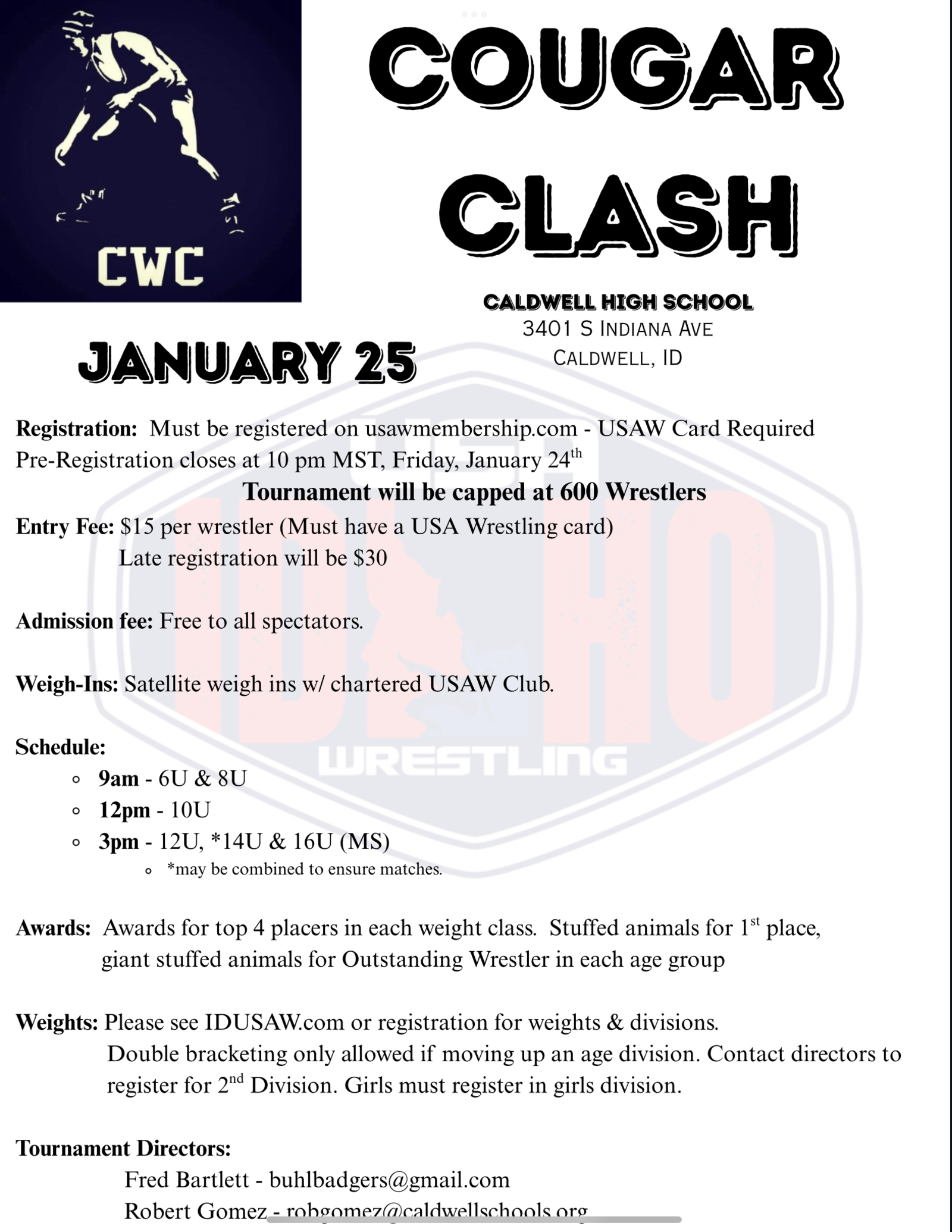 It depends on the age. For wrestlers 8 and under, we recommend no competition until they have at least a year or two of training in. As they gain more confidence we will see their readiness to compete.