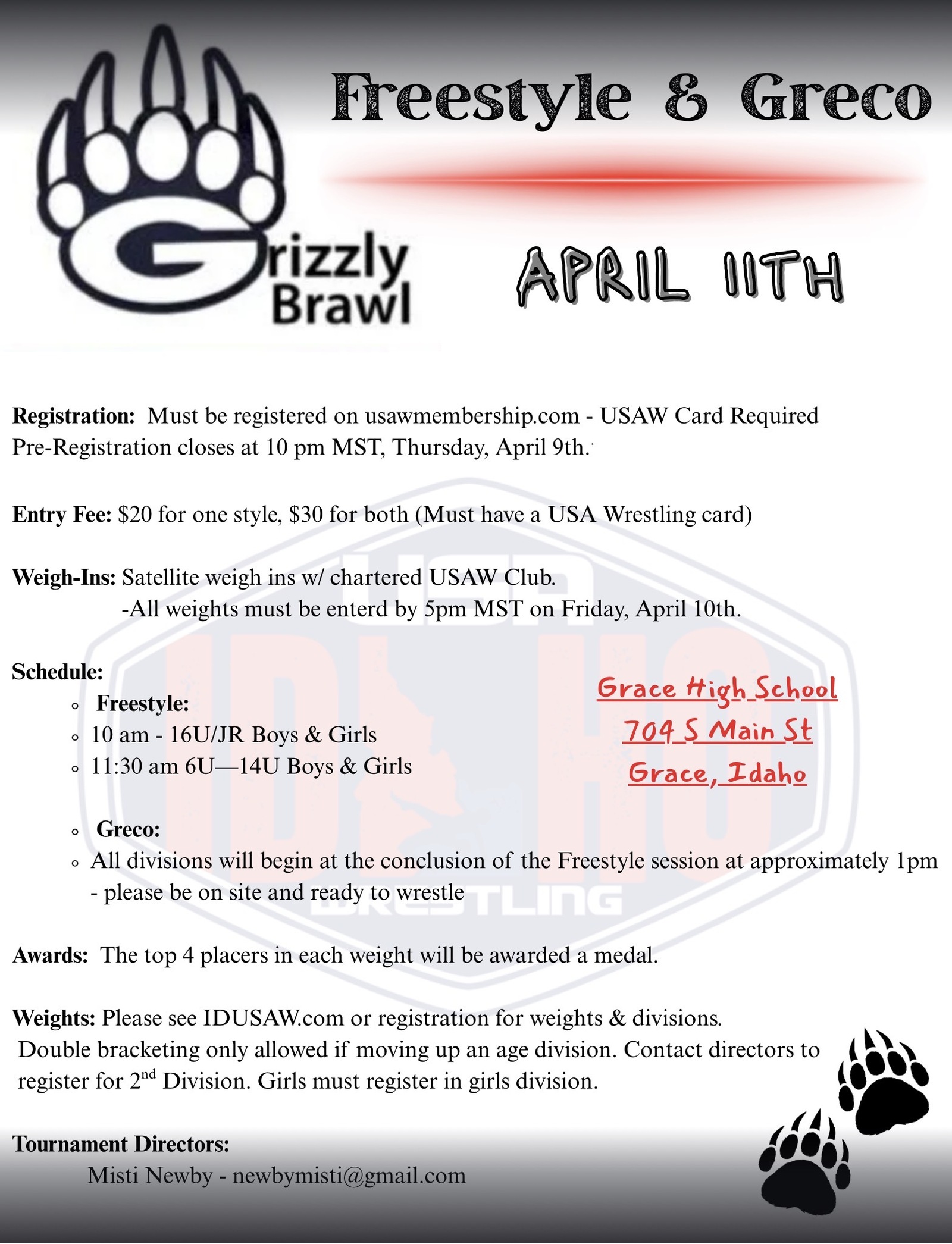 COACHES AND ATHLETES PLEASE BRING A COPY OF YOUR USA WRESTLING MEMBERSHIP CARD WITH YOU TO THE EVENT.